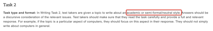雅思官方說明,雅思寫作需要考生使用學(xué)術(shù)或半正式的文體格式來回答問題。