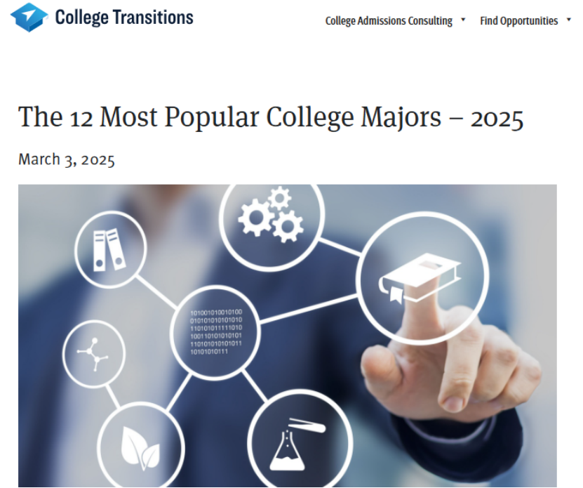 近日,美國教育部與College Transitions網(wǎng)站合作,基于聯(lián)邦政府及國家教育統(tǒng)計中心(NCES)發(fā)布的最新數(shù)據(jù),發(fā)布了2025年美國本科生最受歡迎專業(yè)榜單。